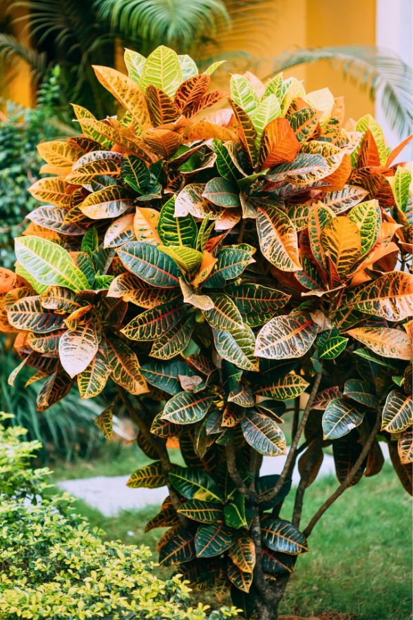 Large croton plant grown as a small tree